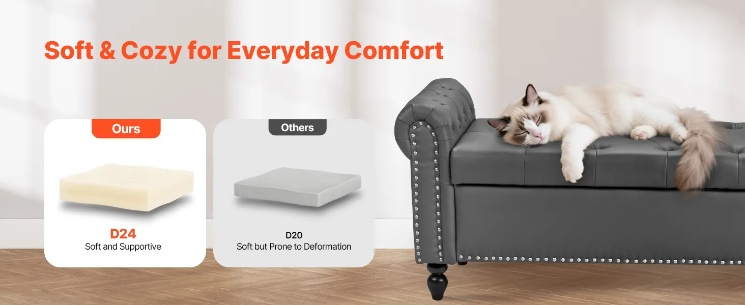 Komfort siedzenia: Poduszka o grubości 50 mm (2 cale) wypełniona jest pianką D24, zapewniającą zrównoważoną miękkość i wsparcie. Idealna do relaksu, zakładania butów lub robienia sobie przerw – odciąża nogi i biodra, zapewniając codzienny komfort.