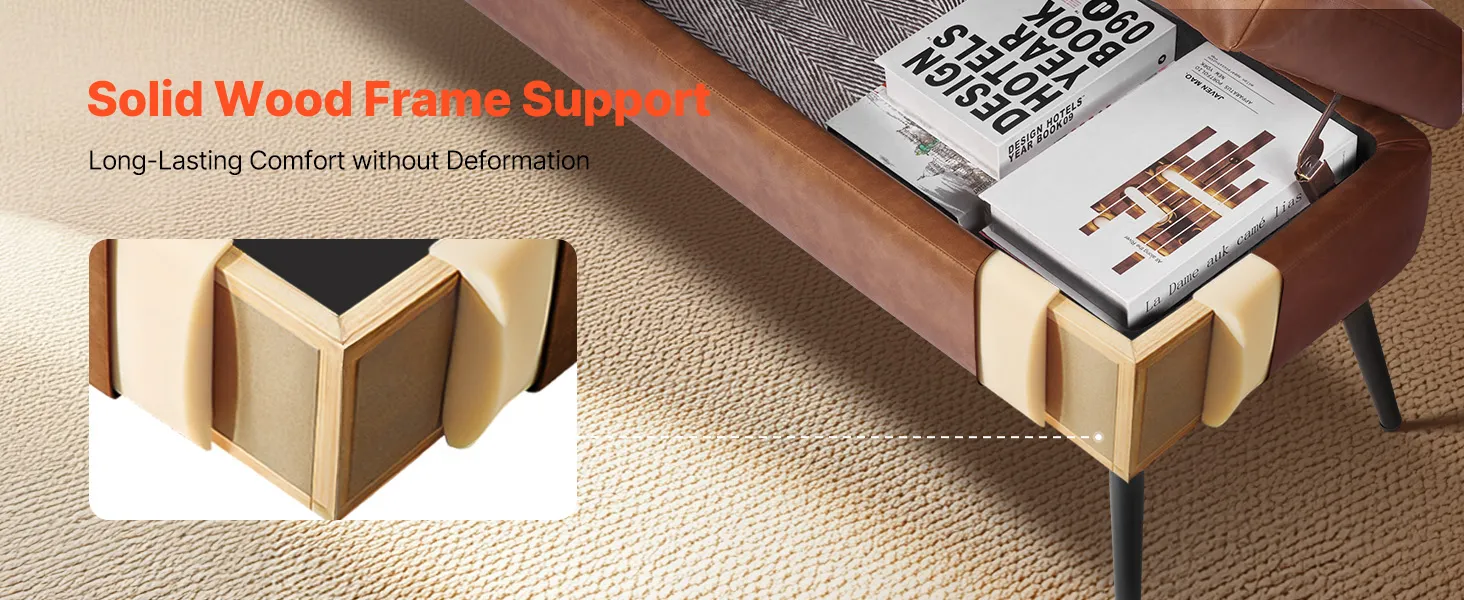 Wzmocnione podparcie: Ta skórzana ławka ze schowkiem oferuje mocne i trwałe podparcie dzięki solidnym nogom z drewna kauczukowego i solidnej ramie z drewna. Wytrzymuje obciążenie do 300 kg (600 funtów). Zaprojektowana do codziennego użytku, bez chwiania się i zapadania. Wymiary ławki: 400 x 1200 x 450 mm (15,7 x 47,2 x 17,7 cala).