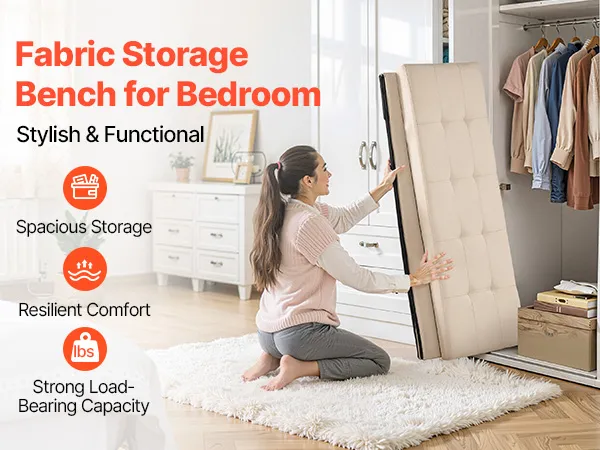 Stylowy wygląd: Nasza ława ze schowkiem dostępna jest w trzech klasycznych kolorach: beżowym, szarym i czarnym. Doskonale pasuje do nowoczesnego, nordyckiego lub tradycyjnego wystroju i idealnie nadaje się do sypialni, przedpokoju, salonu lub gabinetu.