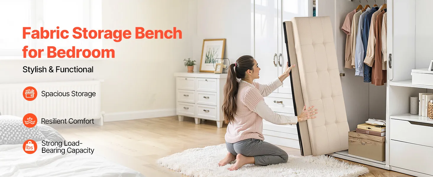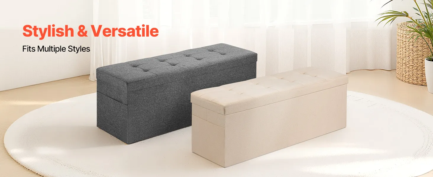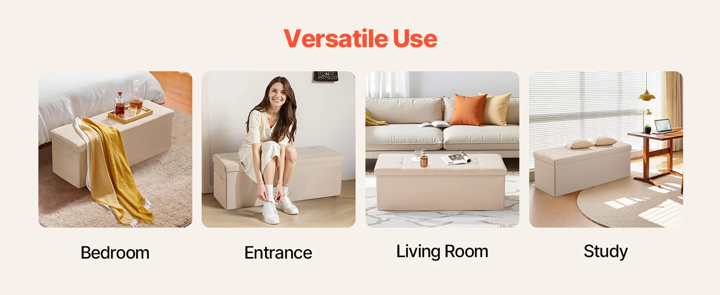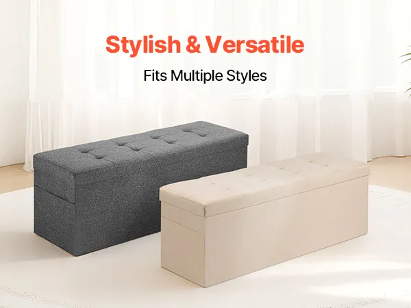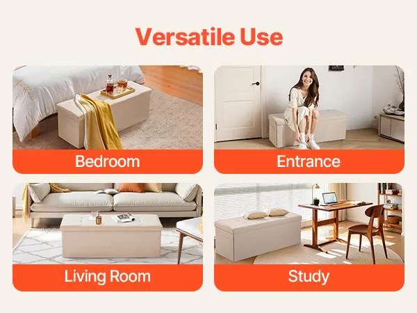 Wielofunkcyjna konstrukcja: Nasz składany puf z miejscem do przechowywania mieści się w nogach łóżka i oferuje ukryte miejsce do przechowywania prześcieradeł i koców. Może również służyć jako siedzisko do zmiany butów, porządkowania ubrań lub relaksu. Składana konstrukcja oszczędza miejsce.