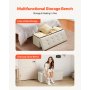 VEVOR Foldable Storage Ottoman Bench, End of Bed Bench with Side Bags, Folding Upholstered Storage Chest Supports 660 lbs, Linen Bed Ottoman with Large Space for Living Room, Bedroom, Entryway, Beige