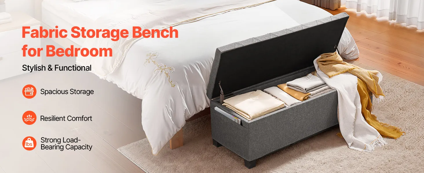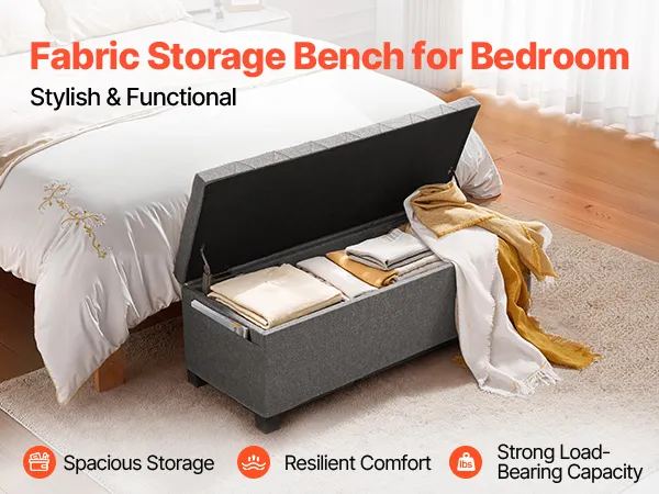 Wielofunkcyjna konstrukcja: Nasz puf ze schowkiem mieści się u stóp łóżka i oferuje ukryte miejsce do przechowywania prześcieradeł, poduszek i koców. Służy również jako siedzisko do zmiany butów, układania ubrań lub relaksu, utrzymując porządek w pokoju i oszczędzając miejsce.