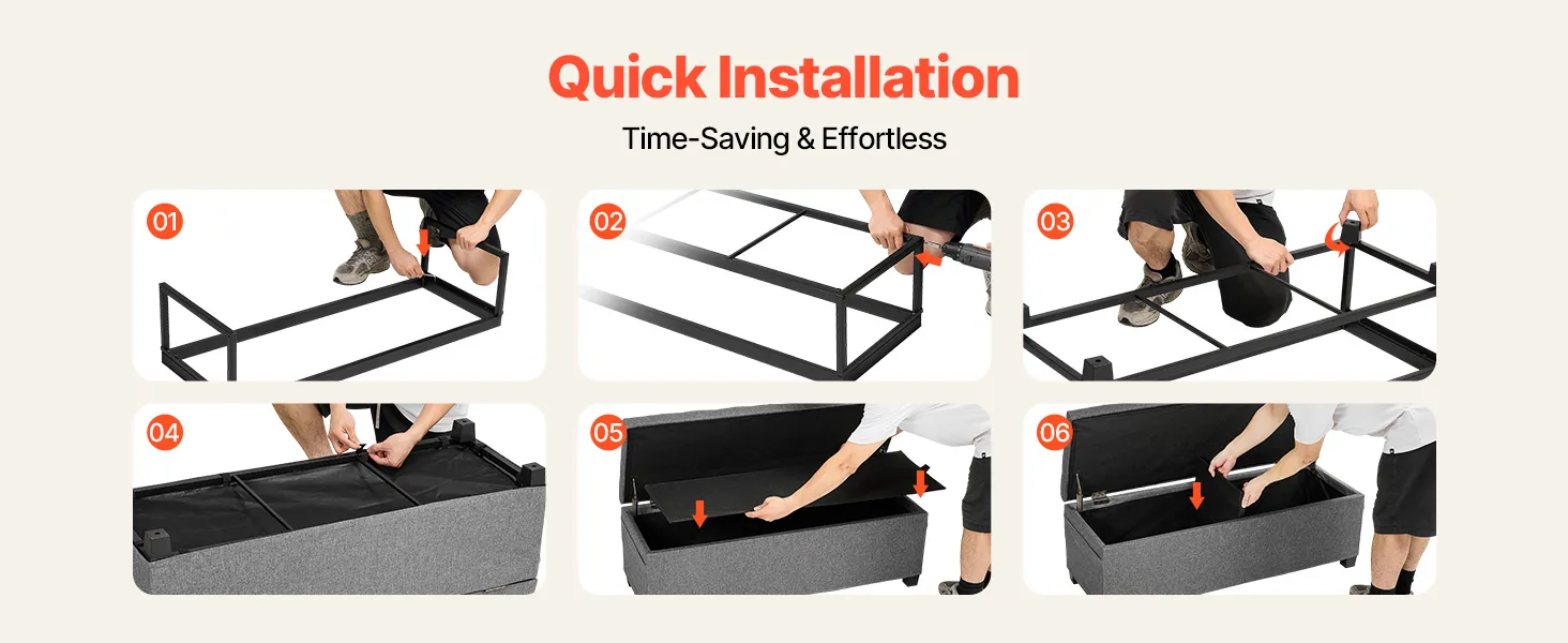 Nie potrzebujesz żadnych specjalnych narzędzi – montaż zajmuje tylko kilka minut. Nasz puf ze schowkiem jest łatwy w montażu i idealnie wpasowuje się w wystrój Twojego domu. Ciesz się komfortem i wygodą w mgnieniu oka.