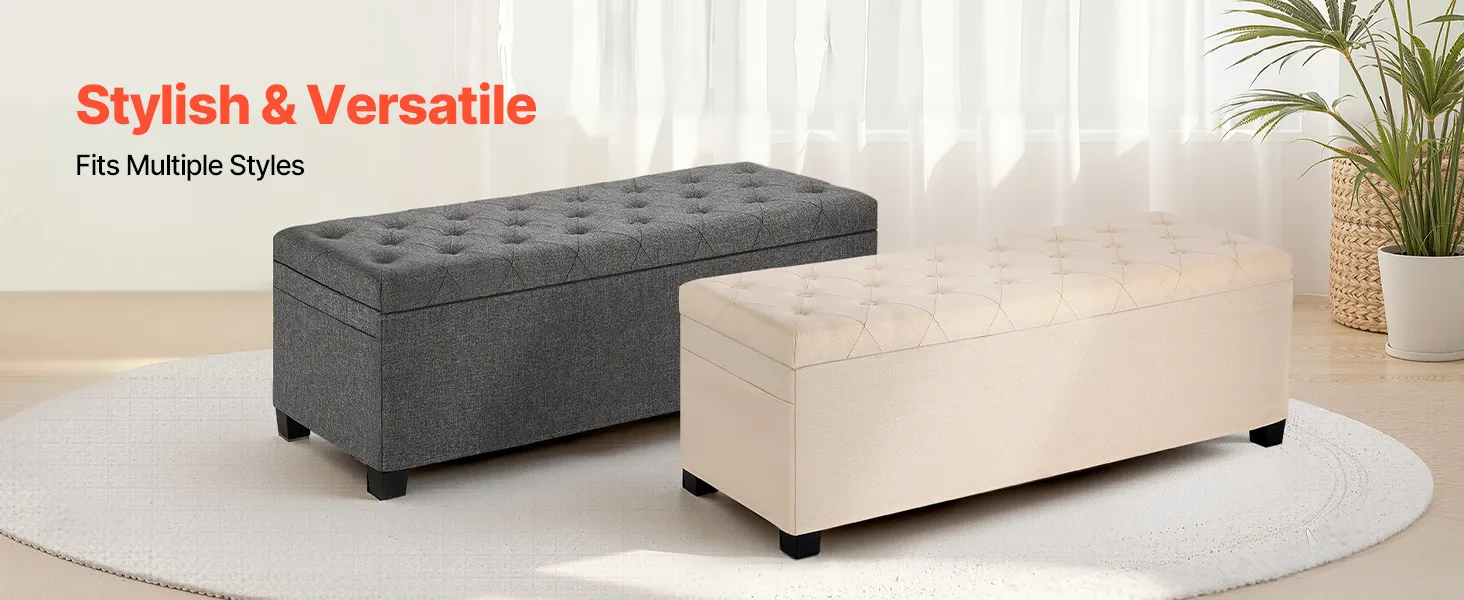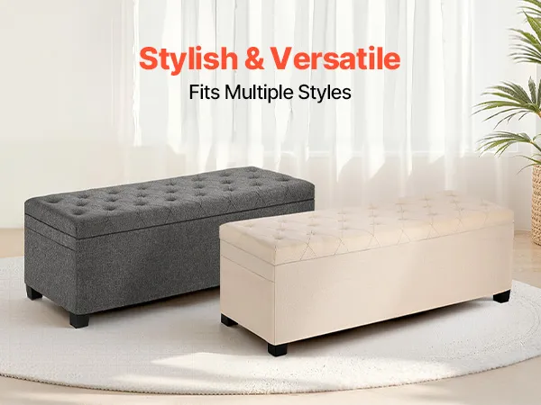 Stylowy wygląd: Nasza ława ze schowkiem dostępna jest w dwóch klasycznych kolorach: beżowym i szarym. Doskonale pasuje do nowoczesnego, nordyckiego lub tradycyjnego wystroju i idealnie nadaje się do sypialni, przedpokoju, salonu lub gabinetu.