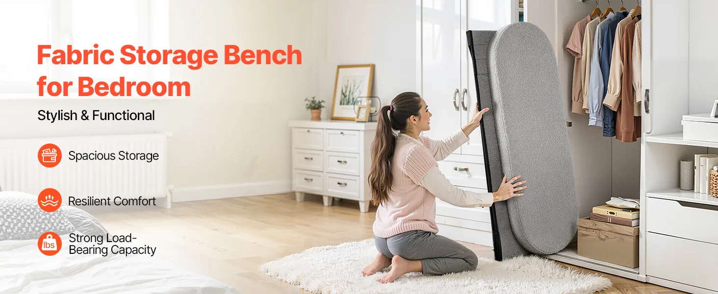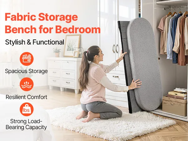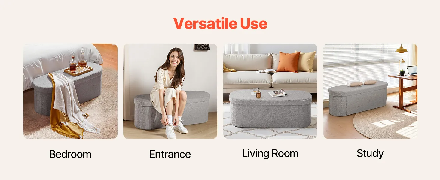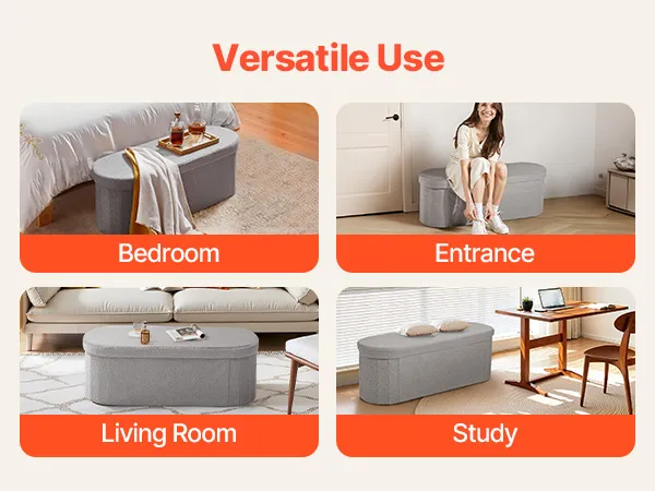 Wielofunkcyjna konstrukcja: Nasz składany puf z miejscem do przechowywania mieści się w nogach łóżka i oferuje ukryte miejsce do przechowywania prześcieradeł i koców. Może również służyć jako siedzisko do zmiany butów, porządkowania ubrań lub relaksu. Składana konstrukcja oszczędza miejsce.