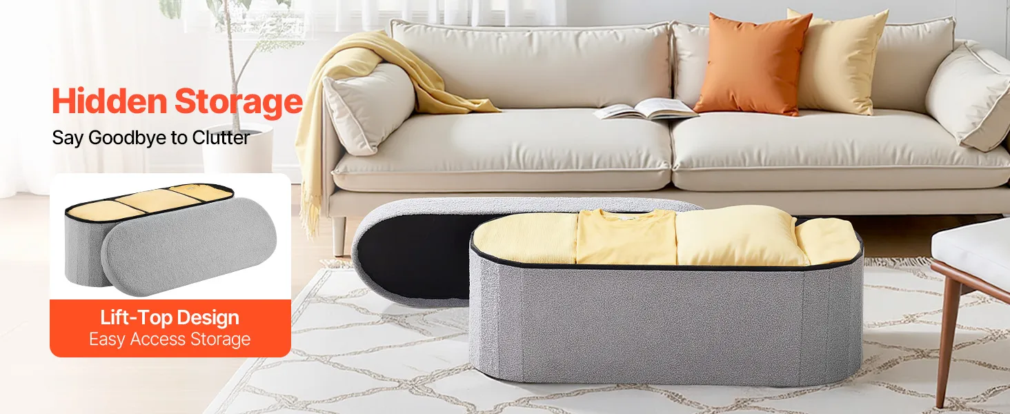 VEVOR Składany podnóżek z pojemnikiem (owalny), składany podnóżek z wyściełanym siedziskiem, nośność do 299,37 kg, 11 x 38 x 38 cm, skrzynia na podnóżek do salonu, sypialni, przedpokoju, szary