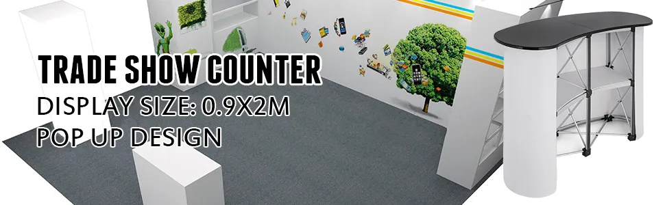 Ta wyskakująca lada na wysokim poziomie jest łatwa w użyciu. Posiada dwie wbudowane półki do wygodnego przechowywania przedmiotów, solidny drewniany blat i aluminiową ramę, mocną i trwałą. Lada targowa pozwala w pełni dostosować promocje, ekspozycje produktów i prezentacje.