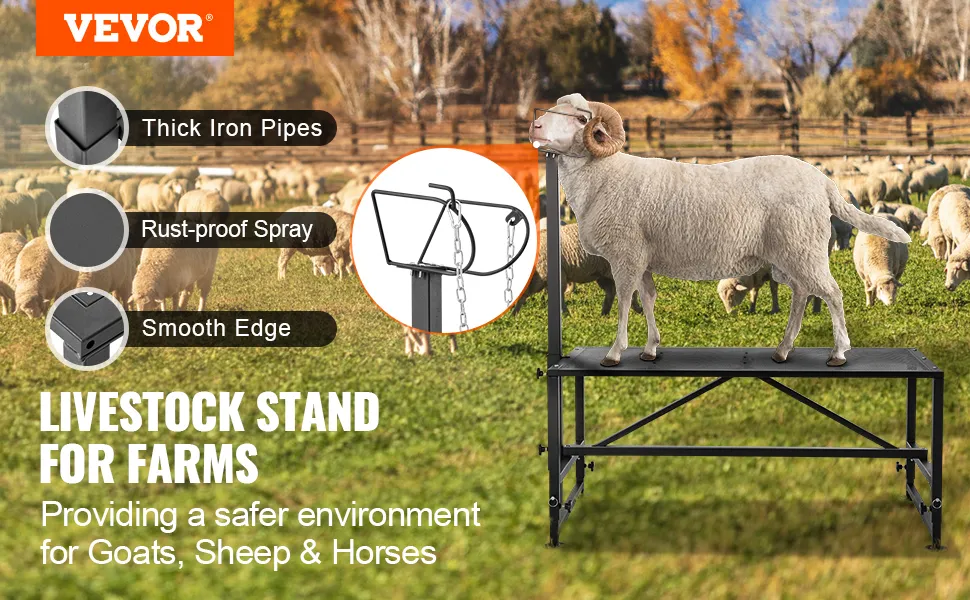 Wysokiej jakości żelazo tworzy stojak dla kóz i owiec VEVOR. Zapewnia to trwałość i długotrwałe użytkowanie. Jest w stanie wytrzymać ciężar i ruch dużych zwierząt. Jest odporny na warunki atmosferyczne i nie rdzewieje, dzięki czemu nadaje się do użytku na zewnątrz. Mocna konstrukcja zapewnia niezawodną platformę do obsługi zwierząt gospodarskich. Nasz stojak jest zbudowany tak, aby służył przez długi czas. Dzięki temu otrzymujesz świetną wartość za jego cenę. Każdy właściciel bydła powinien rozważyć inwestycję w to stanowisko, jeśli chce mieć niezawodne stanowisko do przycinania i strzyżenia.