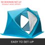 Namiot można złożyć w zaledwie 60 sekund. Dwoje drzwi jest wystarczająco duże, aby zapewnić łatwy dostęp. Każde drzwi posiada podwójny zamek błyskawiczny.