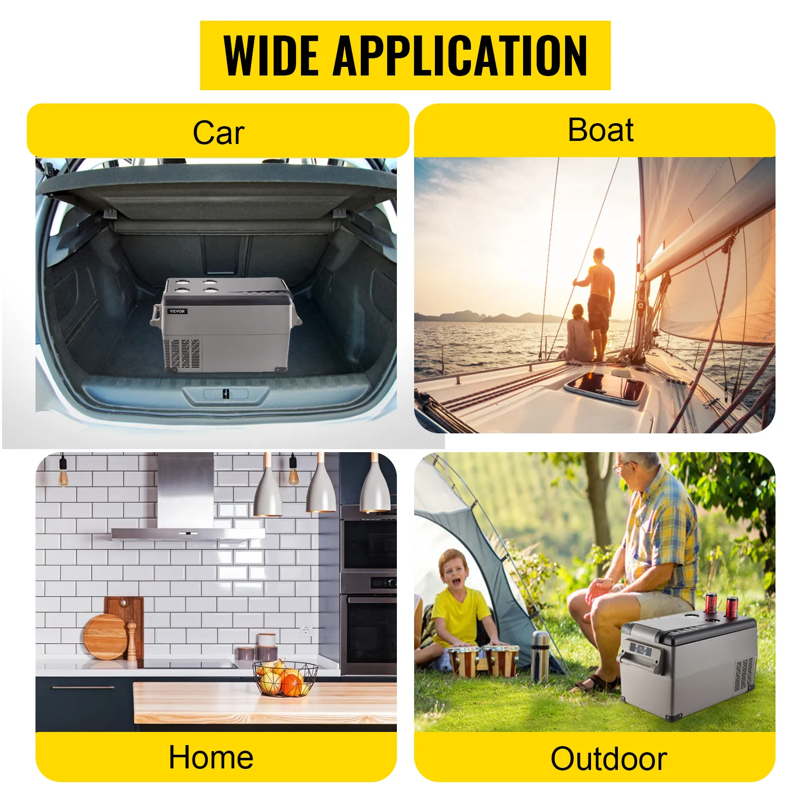 Lodówka 12 V działa na prąd stały 12/24 V i przemienny 110-240 V. Można ją podłączyć do gniazda zapalniczki samochodowej lub gniazdka elektrycznego. Przenośna lodówka kompresorowa nadaje się do kamperów, na kempingi, łodzie, na kemping, na ryby, na wycieczki samochodowe i do aktywności na świeżym powietrzu.