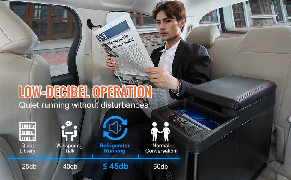 Cicha i energooszczędna: Lodówka pracuje z poziomem hałasu ≤ 45 dB, co pozwala na spokojny sen nawet po długich podróżach. Dotykowy ekran LCD umożliwia wybór trybu ECO i MAX. W energooszczędnym trybie ECO lodówka przenośna zużywa mniej niż 38 watów. Nawet w trybie MAX (43 W) inteligentny obieg powietrza zużywa mniej niż 1 kWh/dzień.