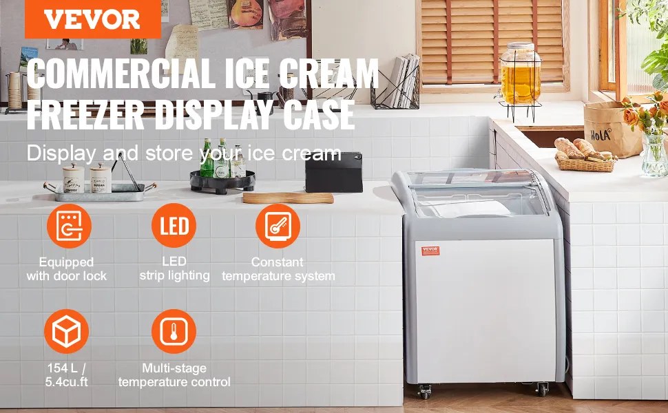 Witryna na lody o pojemności 154 l z dwoma drucianymi koszami do ekspozycji i przechowywania różnych smaków lodów. Urządzenie posiada wielostopniową regulację temperatury i system utrzymywania stałej temperatury, co czyni je energooszczędnymi i wydajnymi.