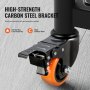 Zestaw 4 kółek transportowych VEVOR 76,2 mm kółka do dużych obciążeń z hamulcami, nośność do 68 kg, kółka skrętne do wewnątrz i na zewnątrz, kółka przemysłowe z podwójnym łożyskiem kulkowym, kółka meblowe, kółka gąsienicowe, kółka stałe
