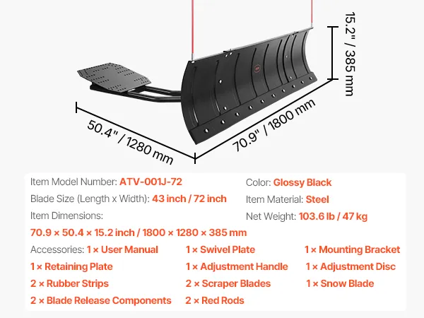 Pług do śniegu VEVOR, zestaw pługów do śniegu 109/182 cm, łatwy w demontażu, uniwersalny, montowany odśnieżacz z gumowymi osłonami, stalowy lemiesz, lemiesz odśnieżający, kompatybilny z większością pojazdów UTV i ATV