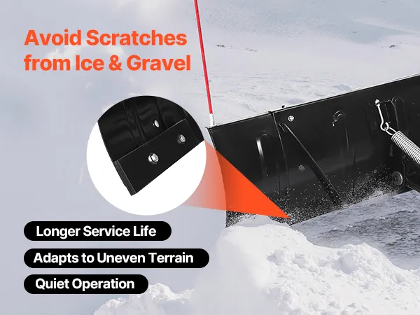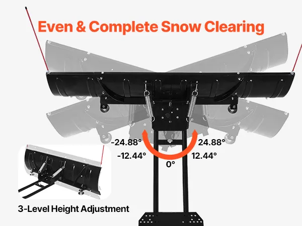 Elastyczny i regulowany: Nasz lemiesz odśnieżarki posiada dwa regulowane ustawienia szerokości: 43 cale/72 cale (109/182 cm), pięciostopniową regulację kąta nachylenia (maks. ±24,88°) oraz czterostopniową regulację wysokości. Z łatwością radzi sobie z wąskimi alejkami, stromymi zboczami i głębokim śniegiem – idealny do pracy w trudnym terenie.