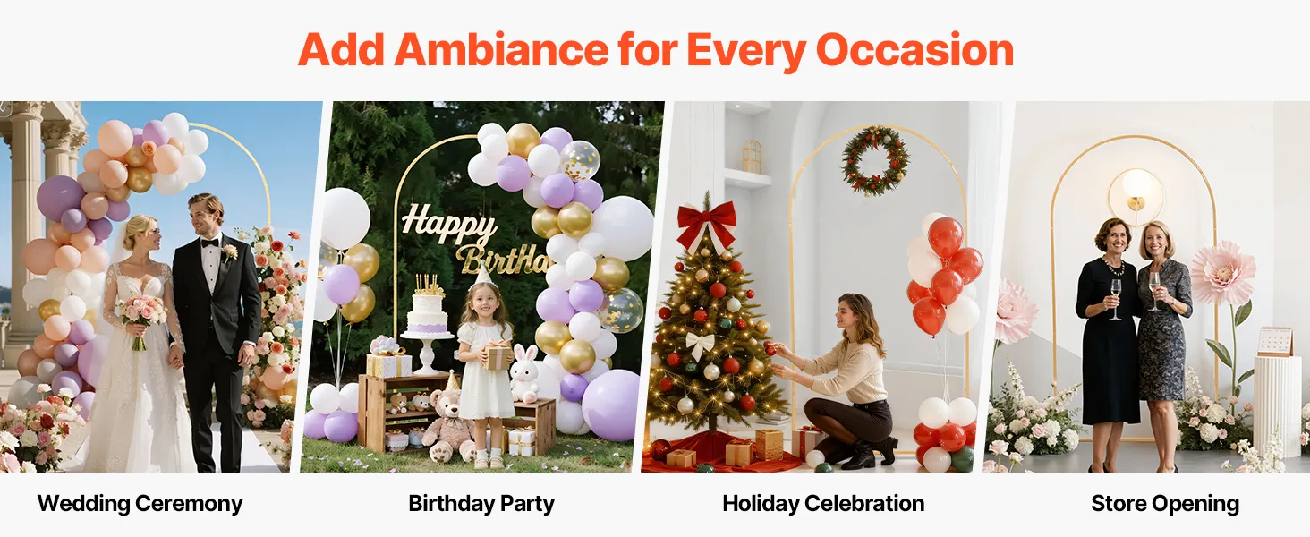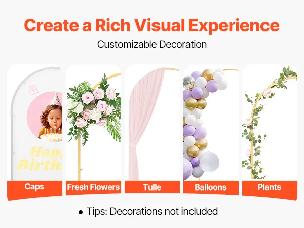 Wszechstronne zastosowanie: Metalowy stojak w kształcie łuku idealnie nadaje się na wesela, przyjęcia, święta lub jako dekoracja na otwarcie firmy. Pozwala na elastyczną dekorację za pomocą balonów, kwiatów, tiulu, świateł LED i wielu innych elementów. (UWAGA: Dekoracje nie są dołączone.)