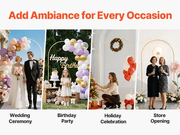 Ten metalowy stojak łukowy idealnie sprawdzi się na weselach, przyjęciach, festiwalach czy otwarciach firm, dodając atrakcyjności wizualnej i tworząc atmosferę każdej okazji, dzięki czemu Twoje wydarzenie będzie bardziej eleganckie i przyciągające wzrok.