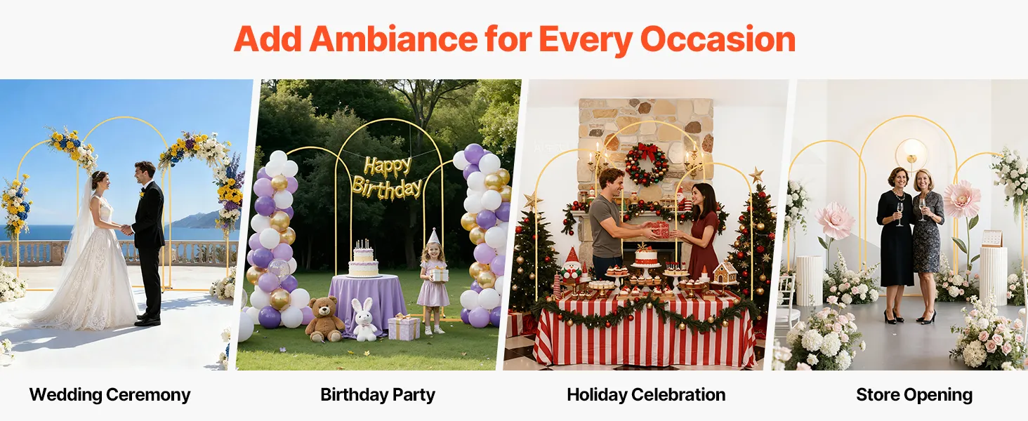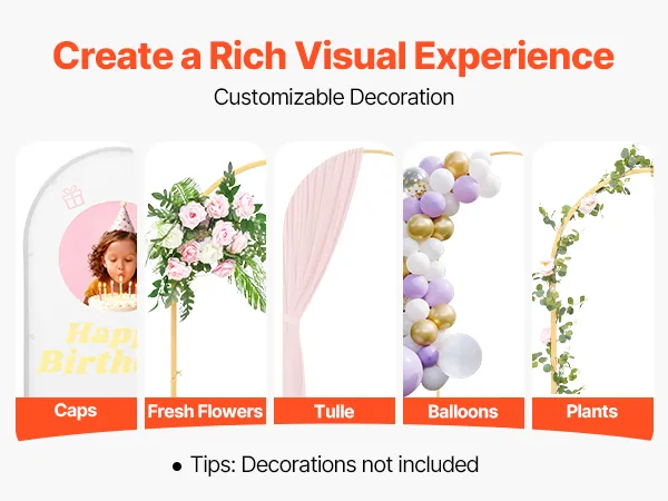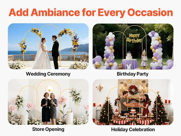 Wszechstronne zastosowanie: Metalowy stojak w kształcie łuku idealnie nadaje się na wesela, przyjęcia, święta lub do dekoracji na otwarcie firmy. Można go udekorować balonami, kwiatami, tiulem i lampkami LED. (Uwaga: Torby do przechowywania są dołączone; dekoracje nie są dołączone).