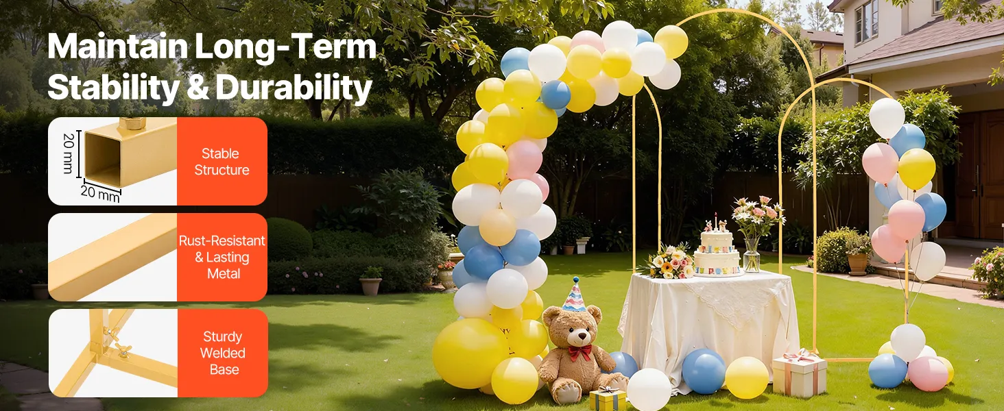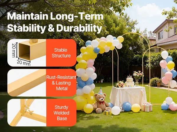 Stabilne podparcie: Ten metalowy stojak na tło z łukiem ma wzmocnioną, spawaną podstawę. Zwiększa to stabilność, zapewnia stabilne podparcie i ogranicza chwianie się, gwarantując, że dekoracje pozostaną na swoim miejscu.