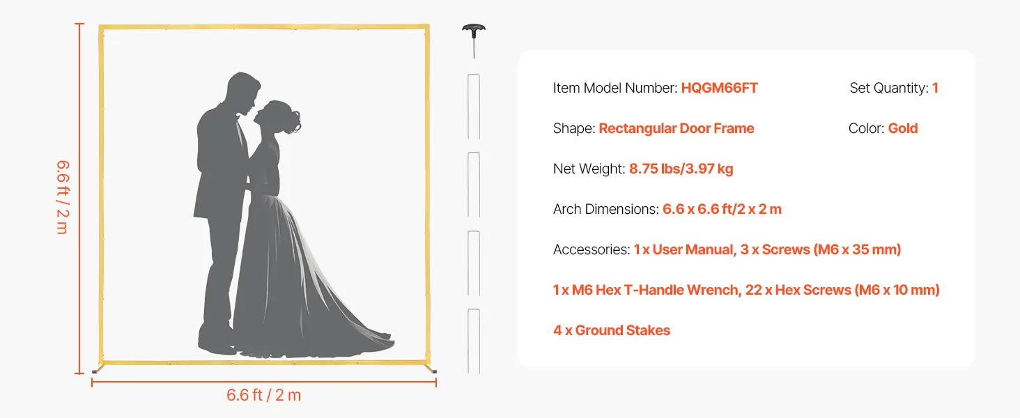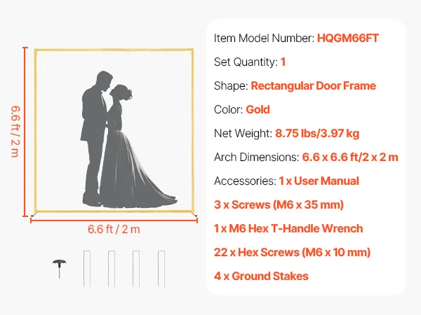 Stojak na tło łukowe VEVOR, 2x2 m, łuk ślubny, kwadratowy, metalowy stojak na tło w kolorze złotym, idealny na wesela, przyjęcia urodzinowe, ukończenia szkół, święta i ceremonie