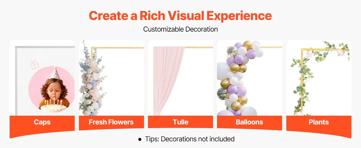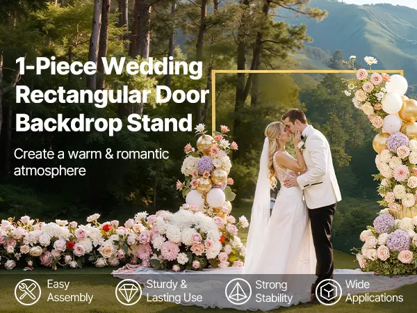 Ten jednoczęściowy, prostokątny, łukowy stojak na tło jest łatwy w montażu. Dzięki metalowej ramie jest stabilny i trwały. Idealnie nadaje się na imprezy zarówno wewnątrz, jak i na zewnątrz, tworząc ciepłą i romantyczną atmosferę.