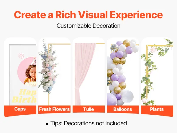 Nasz łukowy stojak pozwala na elastyczne dekoracje balonami, tiulem i innymi ozdobami. Stworzy niepowtarzalne tło, które dopasuje się do Twojego stylu.