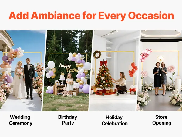 Ten metalowy stojak łukowy idealnie sprawdzi się na weselach, przyjęciach, festiwalach czy otwarciach firm, dodając atrakcyjności wizualnej i tworząc atmosferę każdej okazji, dzięki czemu Twoje wydarzenie będzie bardziej eleganckie i przyciągające wzrok.