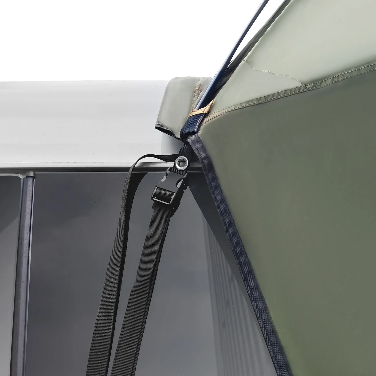 Ta markiza kempingowa zapewnia niezawodną ochronę przed promieniami UV, deszczem i wiatrem. Powłoka przeciwsłoneczna i wodoodporna warstwa zapewniają wygodę i suchość. Pogrubione, odporne na wiatr liny zwiększają stabilność nawet przy silnym wietrze. Niezależnie od tego, czy biwakujesz, organizujesz piknik, czy spędzasz dzień na plaży, ta markiza do ciężarówki zapewnia niezbędne pokrycie i bezpieczeństwo, aby zapewnić bezpieczne i przyjemne wrażenia na świeżym powietrzu.