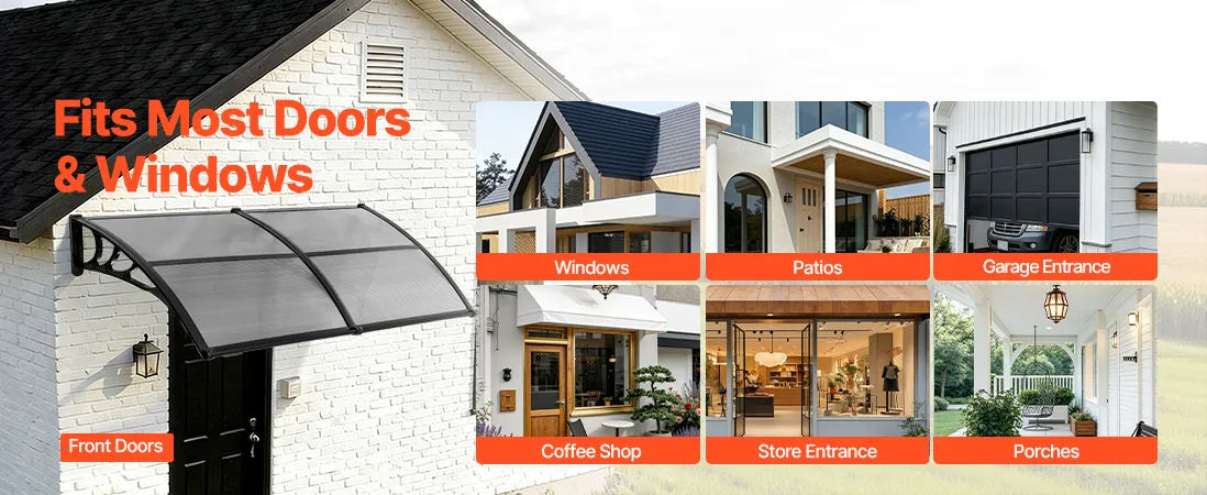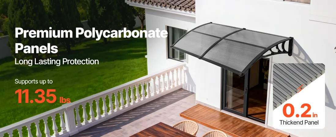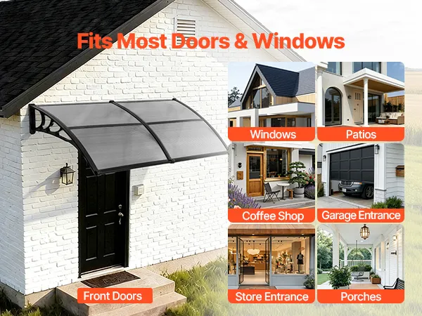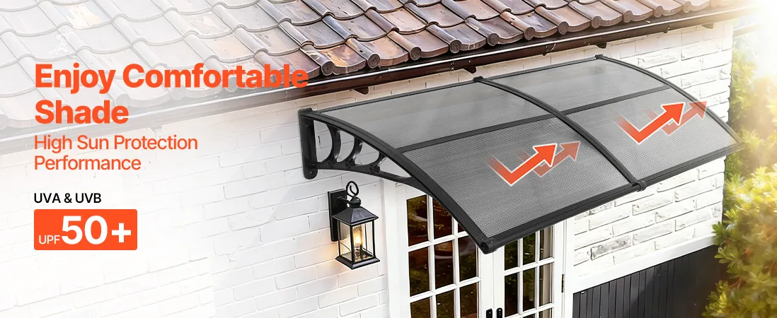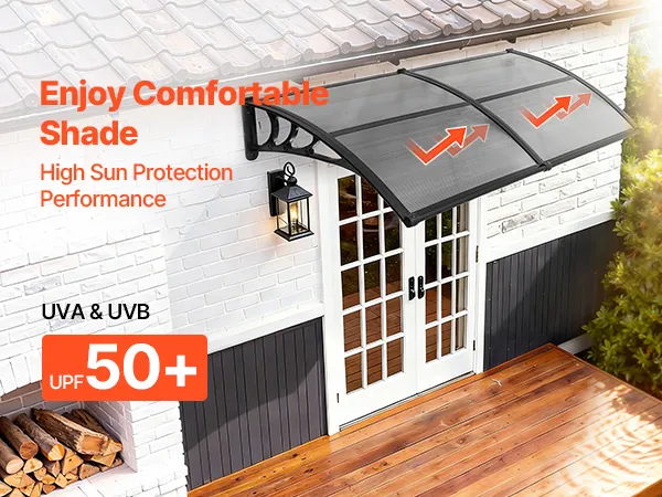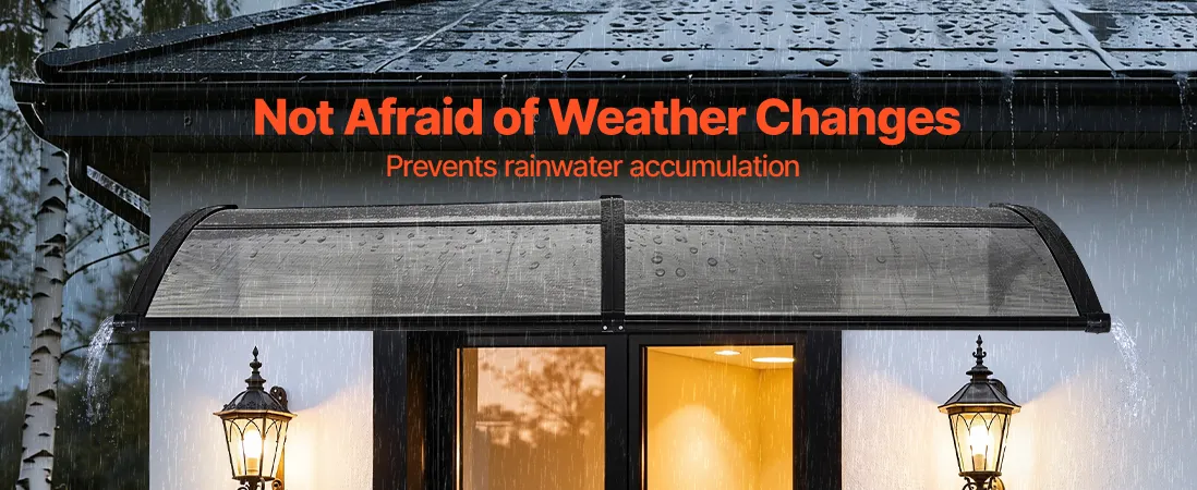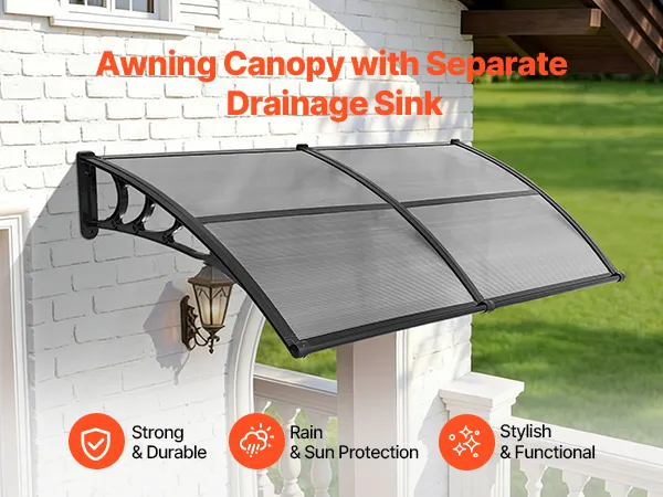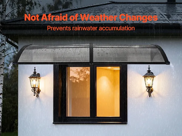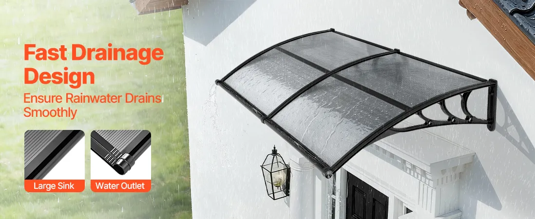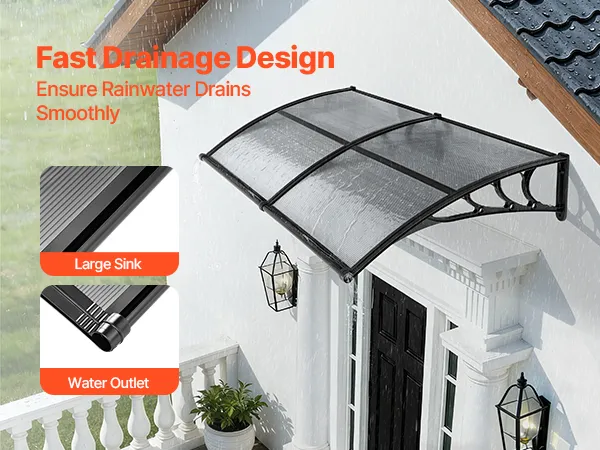 • Wydajny system odprowadzania wody: Dzięki zoptymalizowanemu, kierunkowemu systemowi odprowadzania wody, ta poliwęglanowa osłona drzwi wejściowych szybko i skutecznie odprowadza wodę deszczową z dala od wejścia. Niezależnie od tego, czy pada lekka mżawka, czy ulewny deszcz, strefa wejściowa pozostaje czysta, sucha i antypoślizgowa.