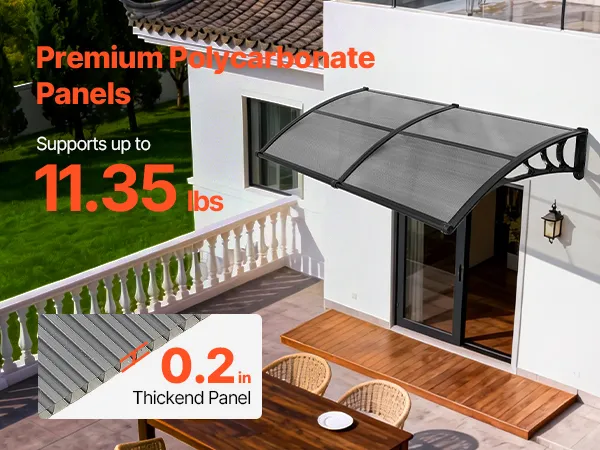 • Solidna i trwała konstrukcja: Ten baldachim, wykonany z wysoce transparentnych paneli poliwęglanowych i wzmocnionych wsporników ABS, oferuje doskonałą nośność. Jest odporny na uderzenia, trudnopalny, dźwiękochłonny i nadaje Twojemu domowi nowoczesny, elegancki wygląd.