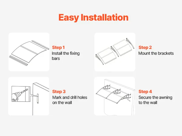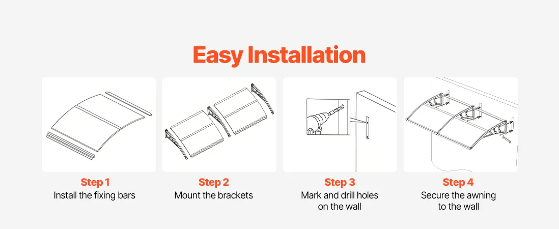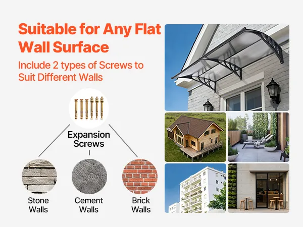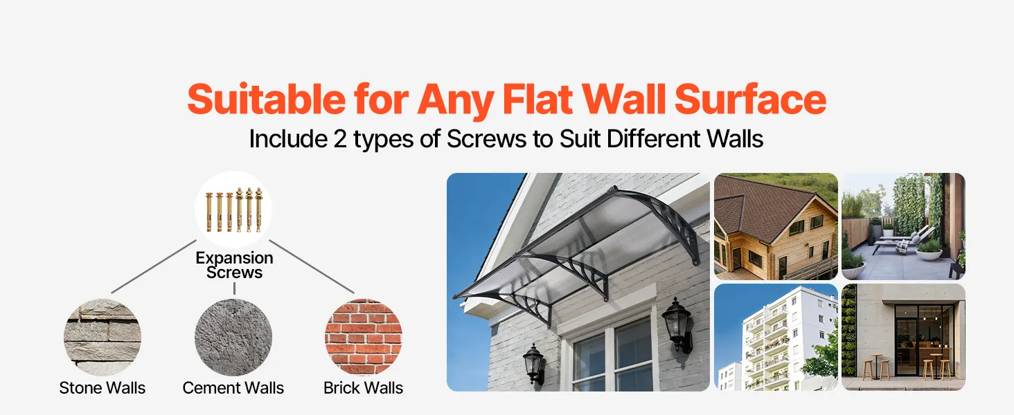 • Szybki samodzielny montaż: Ten zadaszenie jest dostarczane z kompletnym zestawem akcesoriów, łatwą w zrozumieniu instrukcją montażu oraz dwoma rodzajami śrub mocujących do ścian z cegły, betonu lub drewna. Łatwy samodzielny montaż przez jedną osobę. Zmierz przestrzeń, aby uzyskać optymalne dopasowanie.
