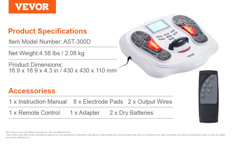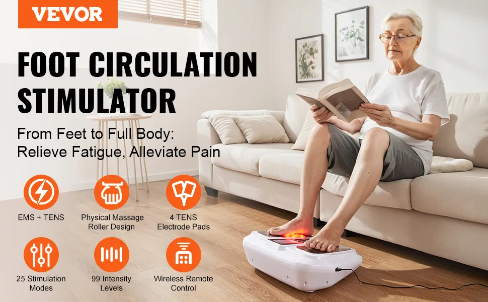 Podwójne technologie: Stymulator krążenia stóp VEVOR łączy w sobie technologię EMS i TENS i został zaprojektowany specjalnie z myślą o łagodzeniu bólu stóp oraz poprawie ogólnego samopoczucia. Dzięki skutecznej stymulacji możesz doświadczyć rozluźnienia mięśni, złagodzenia zmęczenia fizycznego, poprawy krążenia i przyspieszenia metabolizmu.