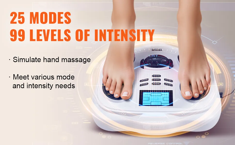 Masażer stóp VEVOR, masażer stóp EMS i TENS dla osób z neuropatią, elektryczny stymulator stóp z wałkiem do masażu fizycznego, 25 trybów i 99 poziomów intensywności łagodzących ból i zapalenie rozcięgna podeszwowego
