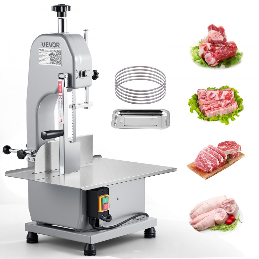 VEVOR Komercyjna elektryczna piła taśmowa do mięsa i kości, piła stołowa do kości o mocy 650 W, stół warsztatowy 315 x 460 mm, krajalnica do mrożonego mięsa wieprzowo-wołowego, srebrna