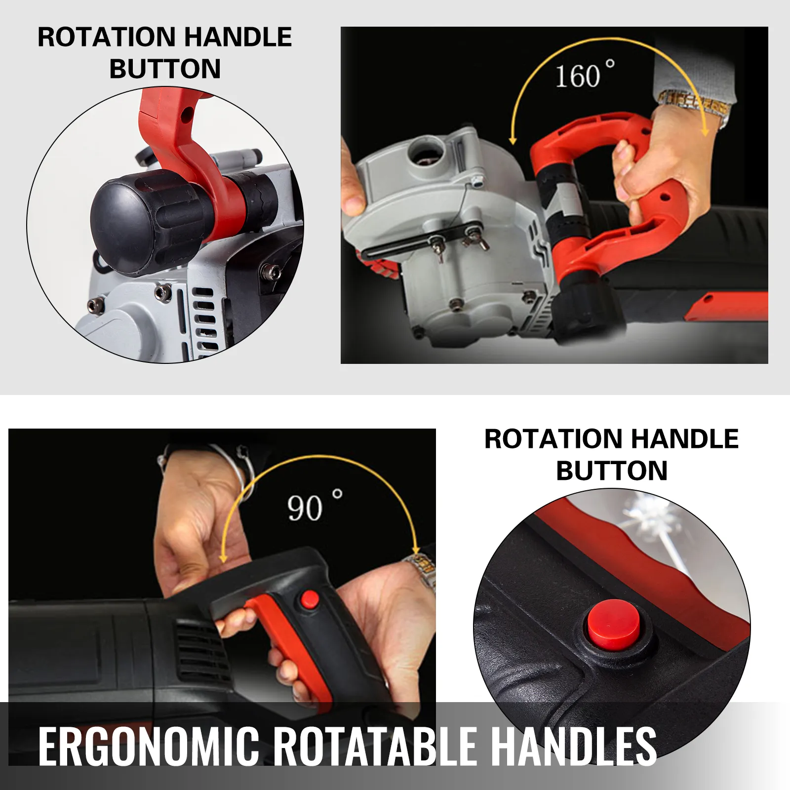 Frezarka do fug ściennych nadaje się do zastosowań domowych i przemysłowych i idealnie nadaje się do cięcia ścian betonowych, marmuru, granitu, czerwonej cegły i stali. Metalowa osłona przeciwpyłowa i plastikowa obudowa są trwałe i wytrzymałe, co zapewnia długotrwałe użytkowanie. Nasza maszyna o mocy 4800 W umożliwia szybkie frezowanie spoin ściennych w jednym cyklu, bez użycia dodatkowych narzędzi. Głębokość i szerokość rowka można łatwo regulować.