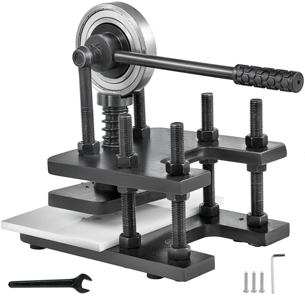 Elegancka, czarna, ręczna maszyna do cięcia skóry z płytą górną o wymiarach 180 x 120 mm, odpowiednia do różnych materiałów. Wykonana ze stali ciągnionej na zimno nr 45, wytrzymuje nacisk 1,5 tony. Solidna konstrukcja i wysoka nośność zapewniają wysoką wydajność. Maszyna idealnie nadaje się do cięcia różnych materiałów, takich jak skóra, naklejki, plastik, arkusze gumowe itp.