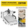 • 【PARAMETRY SPECYFICZNE】 - Obszar roboczy: Obszar roboczy: 300 x 400 x 55 mm; wymiary stołu roboczego 610 x 450 x 390 mm; Prędkość wrzeciona: 0 ~ 8000 obr/min; Moc: 300W