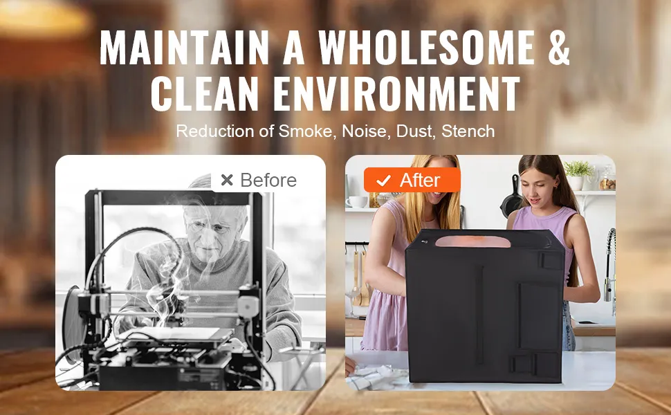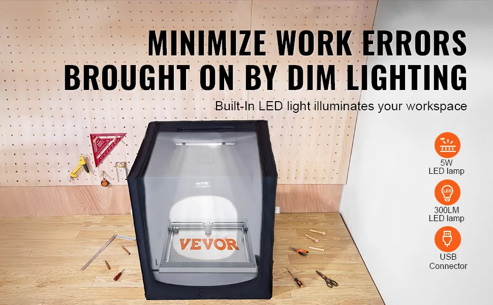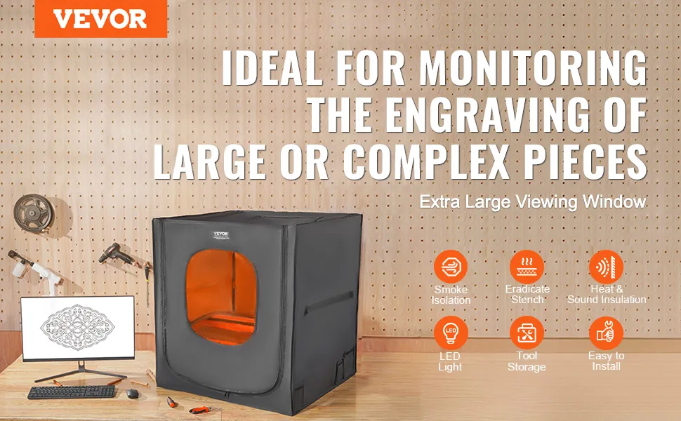 Duży rozmiar, wysoka kompatybilność: Wystarczająca przestrzeń wewnętrzna: 31,5 x 31,5 x 35,4 cala / 800 x 800 x 900 mm, kompatybilna z większością grawerek laserowych dostępnych na rynku, mini drukarkami CNC i 3D. Wyższe i szersze wymiary, dostosowane zarówno dla hobbystów, jak i profesjonalistów, zapewniają odpowiednie dopasowanie i płynną pracę.