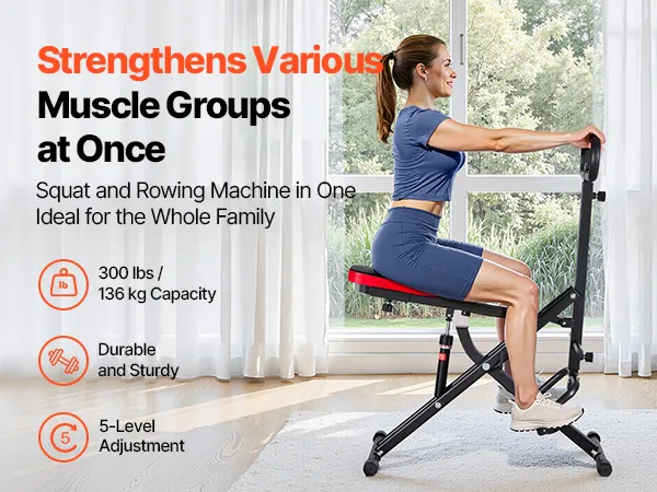 Maszyna do przysiadów VEVOR do głębokich przysiadów w domu, składany sprzęt do ćwiczeń, trenażer pośladków z 12-stopniową regulacją oporu, domowy sprzęt do ćwiczeń pośladków i nóg, maszyna do ćwiczeń pośladków