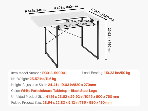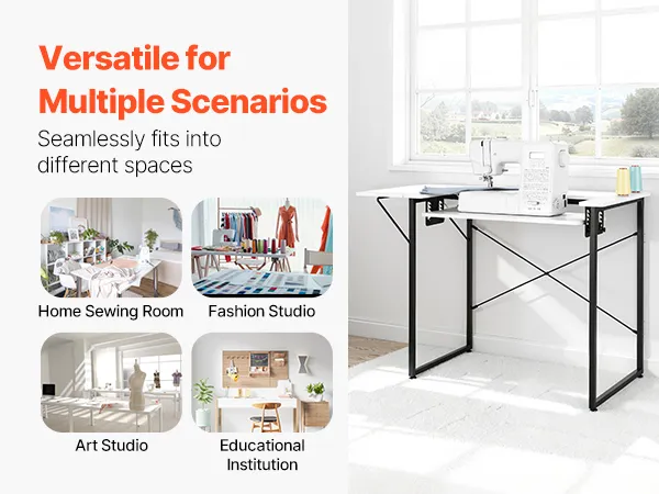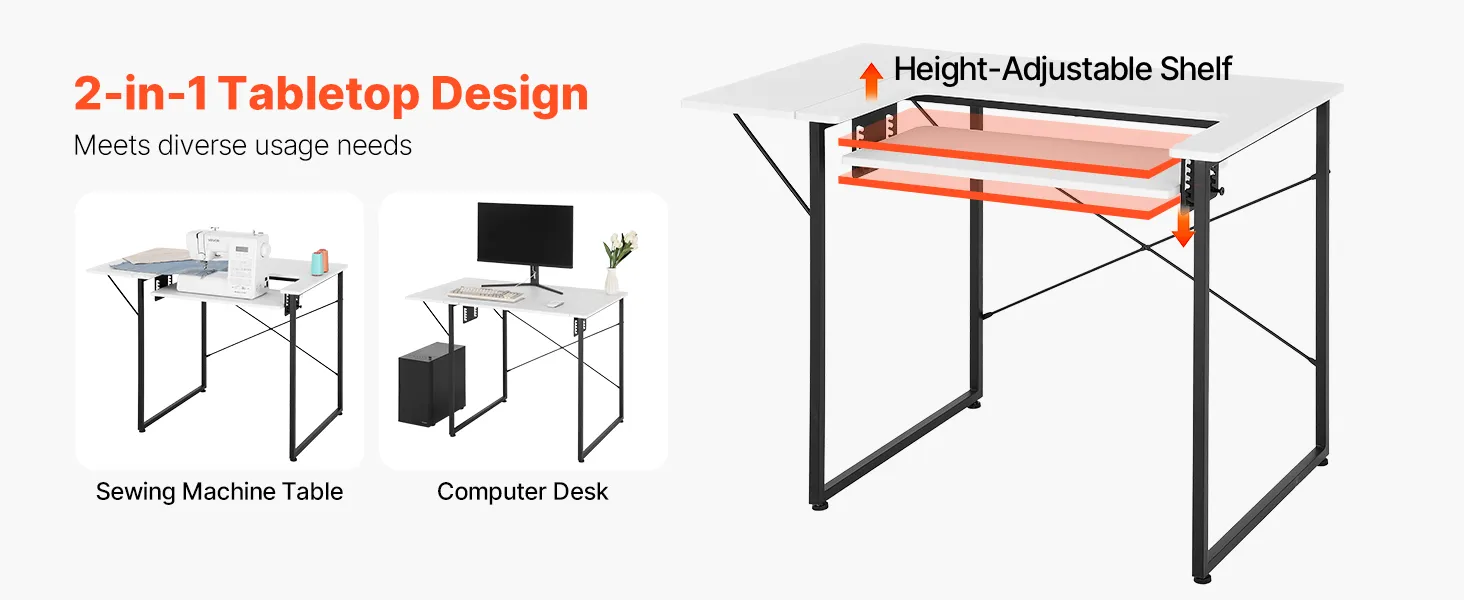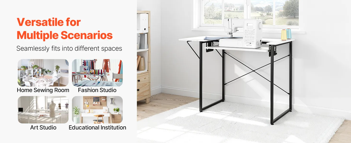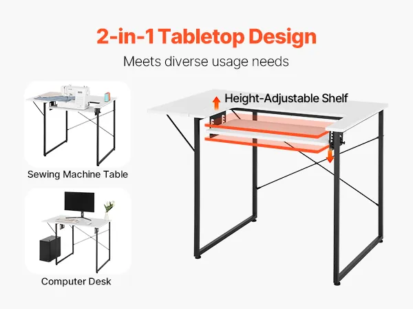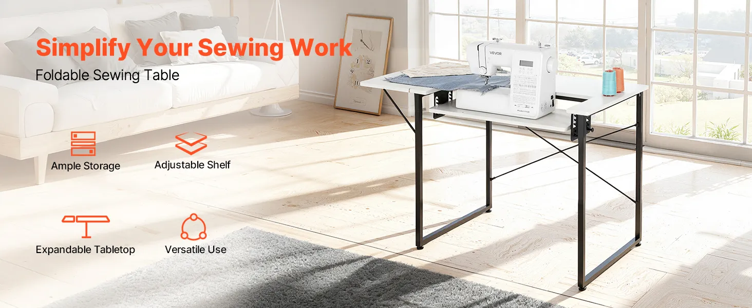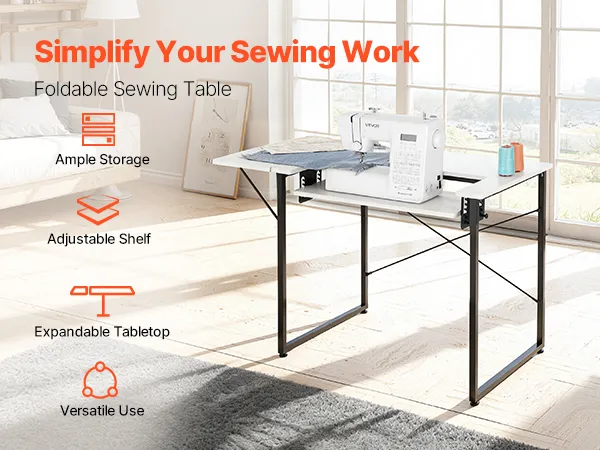 Stół do szycia VEVOR, stół do maszyny do szycia ze składanym blatem, regulowaną półką i stalowymi nogami, stół wielofunkcyjny, biurko komputerowe do domu, studia mody, pracowni artystycznej, instytucji edukacyjnej, biały