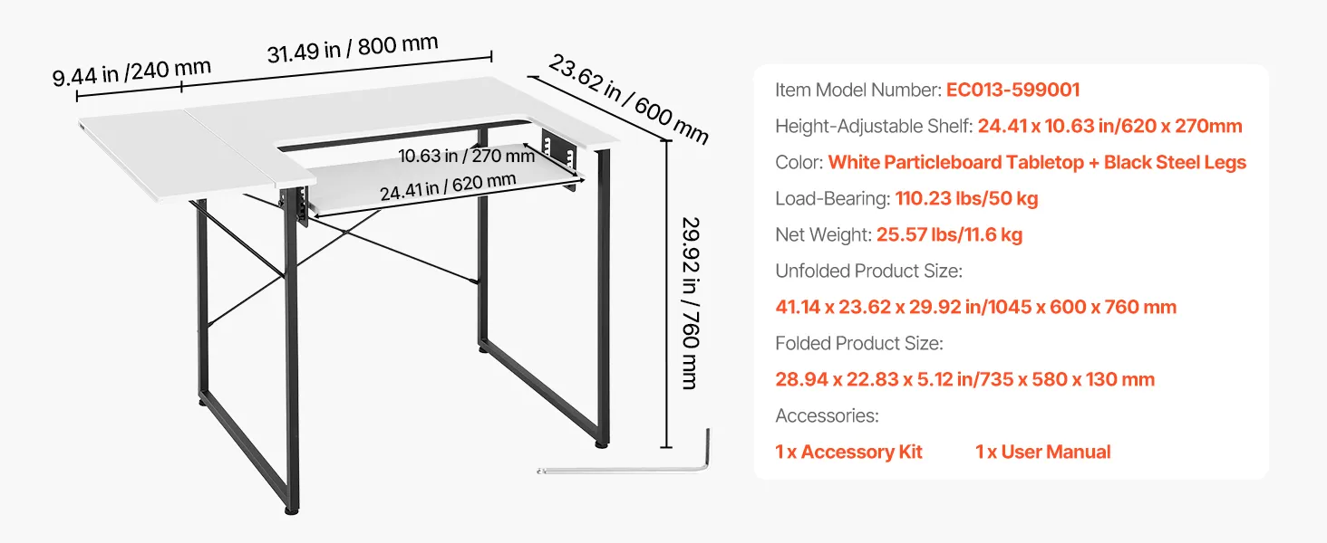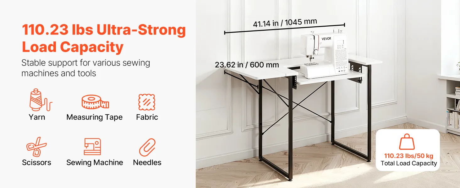 Przestronny stół do szycia: Ten stół do szycia ma wyjątkowo duży blat o wymiarach 800 x 600 mm (31,5 x 23,62 cala). Akcesoria i materiały do szycia, takie jak nici, tkaniny, nożyczki, maszyny do szycia i szpilki, można łatwo posegregować i przechowywać, co usprawnia szycie.