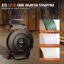 Wózek do spinania VEVOR, do rolek taśmy PET/PP/włókna/stali z rdzeniem o średnicy 8" lub 16", wytrzymały dozownik taśmy, wyposażony w rolki zabezpieczające przed zwijaniem, ulepszony system hamowania, pojemny schowek