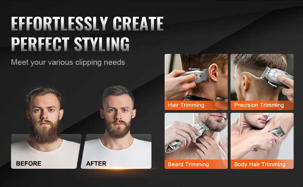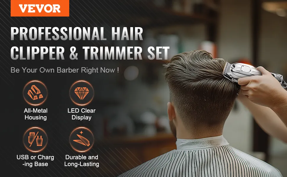 Profesjonalny zestaw do strzyżenia i trymera: Spełnij swoje zróżnicowane potrzeby pielęgnacyjne dzięki zestawowi VEVOR 2 w 1 do strzyżenia włosów dla mężczyzn, który zawiera maszynkę do strzyżenia włosów i trymer do brody. Nasza profesjonalna maszynka do strzyżenia włosów ma zintegrowaną, całkowicie metalową obudowę i jest nie tylko solidna i trwała, ale także zaprojektowana z myślą o łatwym czyszczeniu i konserwacji.
