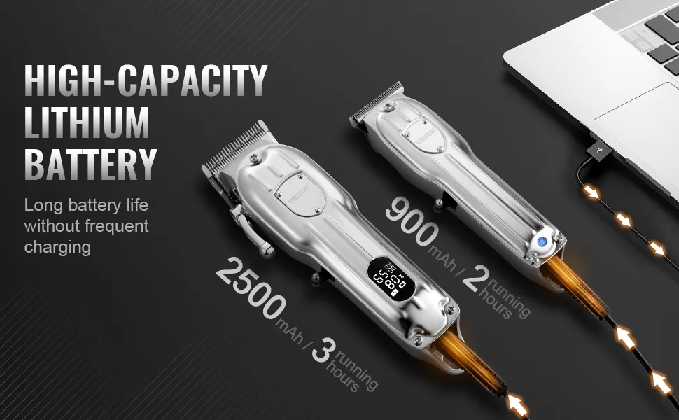 Plug and Play: Nasza męska maszynka do strzyżenia włosów obsługuje ładowanie przez USB i stację dokującą. Maszynka o pojemności 2500 mAh wystarcza na 3 godziny pracy, a trymer o pojemności 900 mAh oferuje 2 godziny pracy, dając Ci mnóstwo czasu na osiągnięcie wymarzonej fryzury. Lekka, bezprzewodowa i poręczna, idealnie nadaje się dla profesjonalnych fryzjerów i miłośników pielęgnacji domowej.