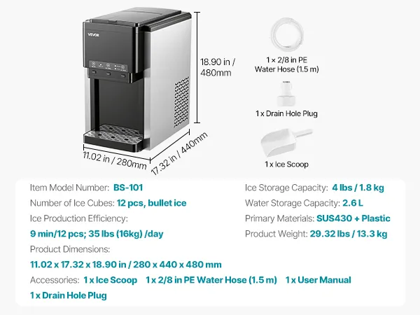 Ta kostkarka do lodu i dozownik wody 3 w 1 bez problemu dostarcza kostki lodu, kruszony lód i schłodzone napoje. Wyposażona w intuicyjny panel sterowania, funkcję samoczyszczenia jednym przyciskiem oraz pokrywę zabezpieczającą, oferuje wygodną obsługę i niezawodne bezpieczeństwo, co czyni ją idealnym wyborem do codziennego użytku.