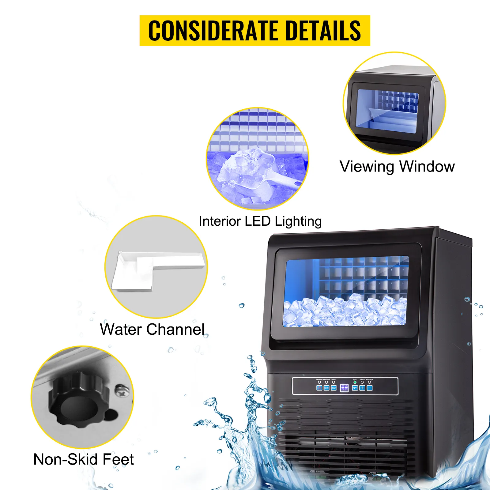 Nasza kostkarka do lodu wykonana jest z wytrzymałego materiału ABS z pogrubioną warstwą pianki, łatwego w czyszczeniu i trwałego. Całodobowa wydajność produkcji i przechowywania sięga odpowiednio 31,75 kg (70 funtów) i 5 kg (11 funtów), co czyni tę automatyczną kostkarkę idealnym rozwiązaniem dla Twojej branży hotelarsko-gastronomicznej lub gastronomicznej. Dostępny jest dodatkowy filtr wody, dzięki czemu kostkarkę można podłączyć bezpośrednio do kranu, oszczędzając czas i wysiłek.