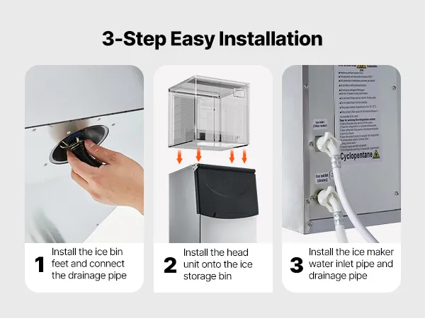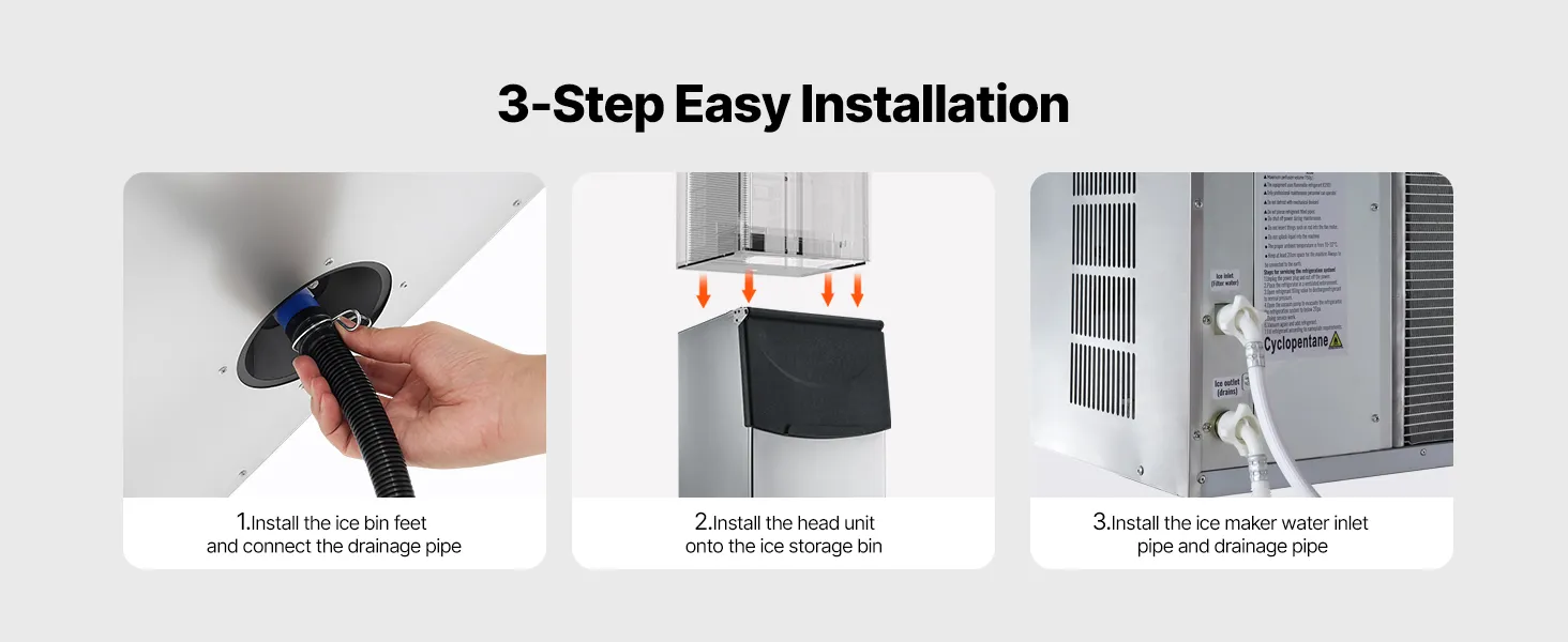 Komercyjny pojemnik do przechowywania lodu można zainstalować w zaledwie 3 prostych krokach. Szybko skonfiguruj maszynę do lodu i zacznij produkować lody.