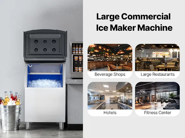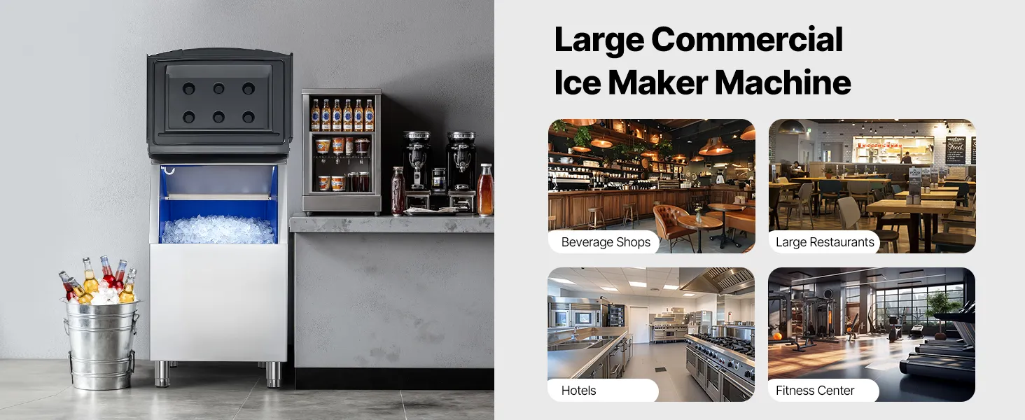 Maszyna do produkcji lodu charakteryzuje się dużą wydajnością, dzięki czemu idealnie nadaje się do kuchni komercyjnych, restauracji, barów, hoteli i sklepów z napojami.