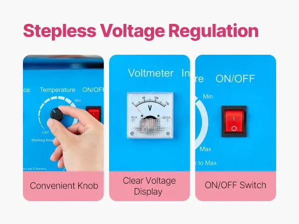 Kontrola temperatury: W odróżnieniu od urządzeń konwencjonalnych, nasza elektryczna maszyna do waty cukrowej posiada wskaźnik napięcia i regulator napięcia. Zmieniając napięcie, można łatwo dostosować temperaturę. Jeśli chcesz spróbować różnych smaków cukru, to na pewno tego potrzebujesz
