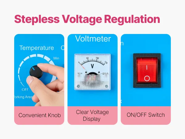 Kontrola temperatury: W odróżnieniu od urządzeń konwencjonalnych, nasza elektryczna maszyna do waty cukrowej posiada wskaźnik napięcia i regulator napięcia. Zmieniając napięcie, można łatwo dostosować temperaturę. Jeśli chcesz spróbować różnych smaków cukru, to na pewno tego potrzebujesz